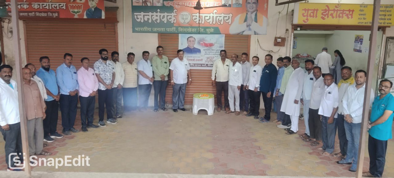 अहमदाबाद येथे एअर इंडियाचे विमान अपघातग्रस्त होऊन त्यात मृत्युमुखी पडलेले नागरिक, क्रू मेंबर तसेच गुजरातचे माजी मुख्यमंत्री विजय रूपाणी यांसह मृत लोकांना शिंदखेडा येथील शहर भाजपा तर्फे कार्यालयाच्या आवारात रविवारी (दि.१५) सायंकाळी सात वाजता शहरातील नागरिकांतर्फे मेणबत्ती पेटवून पुष्पार्पण करून मौन साधत सामूहिक श्रद्धांजली अर्पण करण्यात आली.