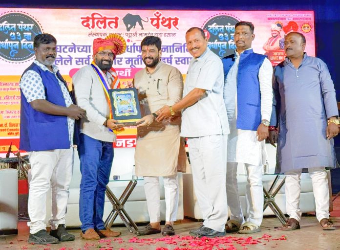पद्मश्री नामदेवराव ढसाळ यांनी स्थापन केलेल्या दलित पँथर संघटनेच्या ५३ व्या वर्धापन दिनानिमित्त बालगंधर्व रंगमंदिर येथे झालेल्या कार्यक्रमात पवार यांचा गौरव करण्यात आला. यावेळी यशवंत नडगम उपस्थित होते.
