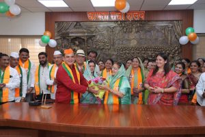 पदभार स्विकारण्याआधी छत्रपती शिवाजी महाराज यांच्या पुतळयाला अभिवादन केले, तेथून ढोलताश्यांच्या गजरात आणि फटाक्यांच्या आतिशबाजीत नगरपालिकेत प्रवेश केला, अध्यक्षांच्या दालनात जाणता राजा छत्रपती शिवाजी महाराज यांना अभिवादन करून नगराध्यक्षांना खुर्चीवर विराजमान केले. यावेळी लोकनेते सरकारसाहेब रावल, सौ.सुभद्रादेवी जयकुमार रावल, जिल्हा परीषदेच्या माजी अध्यक्षा सौ.धरतीताई देवरे, माजी नगराध्यक्ष डॉ. रविंद्र देशमुख,बाजार समितीचे सभापती नारायण पाटील,भाजपाचे शहराध्यक्ष जितेंद्र गिरासे, गटनेता निखील जाधव, शहराध्यक्ष जितेंद्र गिरासे, यांच्यासह नवनिर्वाचित नगरसेवक मुकेश गणसिंग देवरे, कुकरेजा रविना महेशकुमार, सोनवणे सरलाबाई छोटू ,शेख शिबान अहमद रियाज अहमद, चव्हाण अक्षय वसंत ,बागवान सुपीयाबी मेहमुद, नगराळे कल्पनाबाई गोपाल, पिंजारी शेख नबु शेख बशिर, पाटील विजय जिजाबराव , मराठे भारती विजय, कागणे वैशाली शरद , सुभाष कांतीलाल धनगर, रामोळे देवयानी संजोग , पाटील चतूर जिभाऊ, गिरासे नरेंद्र नथ्थुसिंग , अग्रवाल राणी राकेश, महाजन वैशाली प्रविण , निखीलकुमार रविंद्रसिंग जाधव, चौधरी अपूर्वा चिरंजीवी , गिरासे जितेंद्र धनसिंग, महाले भावना हितेंद्र , देशमुख रविंद्र भास्कर, भिल सरजू वेडू , बागुल सुवर्णा युवराज, ठाकुर भरतरी पुंडलिक, गिरासे ललिता जितेंद्र आदी नगरसेवक यांच्यासह भाजपाचे सर्व प्रमुख पदाधिकारी उपस्थित होते.