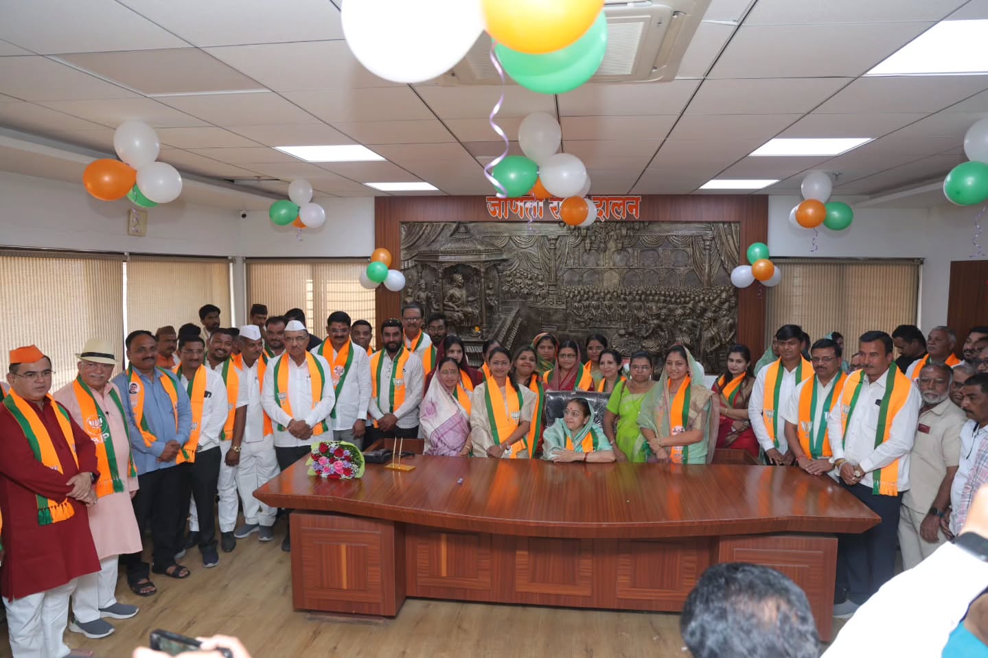 दोंडाईचा नगरपालिकेच्या बिनविरोध लोकनियुक्त नगराध्यक्षा मॉसाहेब सौ. नयनकुंवरताई रावल यांच्यासह सर्व 26 बिनविरोध नगरसेवकांनी आज पालिकेच्या सभागृहात जावून आपला पदभार स्विकारला.