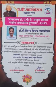 Homeताज्या बातम्यामुंबई येथील डॉ. विनय तळावडेकर यांना भारतरत्न डॉ. ए. पी. जे. अब्दुल...