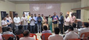 ✍️ शिंदखेडा माझा (यादवराव सावंत) संपादक :-. नुकत्याच नगरपंचायत निवडणूक संपन्न झालेल्या निवडणूकीत अजित दादा पवार च्या राष्ट्रवादी काँग्रेस पक्षाने नगराध्यक्षा कलाताई सुकलाल माळी या लोक नियुक्त नगराध्यक्ष म्हणून निवडून आल्यात त्यांच्यासोबत चार नगरसेवक निवडून आले तसेच त्यांना काँग्रेसचे एक राष्ट्रवादी काँग्रेस शरद पवार गट असे एक अशा नगरसेवकांनी पाठिंबा दे त त्यांची संख्या आठवर गेली आहे निवडुन आल्यावर पहिल्यांदाच आज पत्रकार दिनाचे औचित्य साधत नगरपंचायत सभागृहात शहर व तालुक्यातील सर्व ज्येष्ठ श्रेष्ठ पत्रकारांचा सन्मान करण्याचा त्यांनी ठरवले त्यानुसार सभागृहात गटनेते राकेश दादा माळी यांचे आदेशानुसार सर्व पत्रकारांचा सन्मान नगराध्यक्षा सह नगरसेवकानी केला तत्पूर्वी पत्रकार हे नेहमी चांगला प्रश्न व समस्या वर वाचा फोडत काही चुकाही लोकप्रतिनिधी व प्रशासनाला निदर्शनास आणुन देत असतात. यावेळी पत्रकारांनी नगरपंचायत मार्फत होणाऱ्या सर्व चांगल्या कामाबद्दल प्रसिद्धी देण्याचे व चुका निदर्शनास आणुन दया असं गटनेते राकेश माळी व लोकनियुक्त नगराध्यक्षा कलाताई माळी यांना सांगीतले त्यावर पत्रकार हा सर्व चांगल्या कामाबाबत प्रसिद्धी देण्याचे आश्वासन दिले तसेच वेळोवेळी सहकार्य करण्याचे, मार्गदर्शन करण्याचे आश्वासन देखील दिले. हयावेळी गटनेते राकेश दादा माळी, सुभाष माळी, प्रकाश चौधरी, राहुल पाटोळे,अरुण देसले, राहुल सोनवणे,नगरसेवक अर्जुन सोनवणे,कलाताई सुकलाल माळी, पुष्पा गोपाळराव सोनवणे, रजुबाई सुभाष माळी, सुनील अरुण देसले,कमलबाई रविंद्र पाटोळे सह नगरपंचायत प्रशासकीय अधिकारी सचिन वाघ, आरोग्य विभाग अभियंता विपुल साळुंखे, अधिकारी लाडे सह कर्मचारी व कार्यकर्ते उपस्थित होते.हयावेळी सुभाष माळी, अरुण देसले, परेश शहा, दिपक माळी, प्रदीप दिक्षित यांनी मनोगतातुन शहराचा कायापालट करा आम्ही साथ देवु असे आश्वासन दिले. प्रा. पत्रकार संघांचे सचिव यांनी सुत्रसंचलन तर लोकनियुक्त नगराध्यक्षा कलाताई माळी यांनी आभार मानले.
