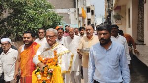 शिंदखेडा शहरात लक्ष्मी रमणा गोविंदा चा जयघोष                                                          👉 शिंदखेडा तील रथोत्सव मोठ्या उत्साहात ..       ✍️ शिंदखेडा माझा संपादक यादवराव सावंत        👉 140 वर्षांची परंपरा असलेला शिंदखेडा शहरातील बालाजी रथोत्सव मंगळवारी दि.०७/१०/२०२५ रोजी दुपारी एक वाजता जागेवरून हलला आणि शहरातील रथगल्लीपासुन रथ मिरवणूकीला सुरुवात करण्यात आली. सकाळी ८ वा. सुदर्शन चक्र मिरवणूक रथ मार्गानेच निघाली. सुदर्शन चक्र मिरवण्याचा मान परंपरेनुसार गिरासे परिवाराला असुन धनंजय गिरासे, रोहित गिरासे यांना दिला. रथावर आरुढ होण्यापुर्वी श्रीची पुजा मठाधिपती मेघशाम बुवा यांच्या हस्ते करण्यात आली.पुजा विधीचे कार्य राहुल जोशी व देवेंद्र जोशी यांनी केले.त्यानंतर रथाजवळ मध्यभागी श्री. व्यंकटेश बालाजींची मूर्ती ठेवण्यात आल्यानंतर मठाधिपती मेघश्याम बुवा यांच्या हस्ते विधिवत पूजा करण्यात आली.दुपारी साडेबारा वाजता वंशपरंपरेनुसार राऊळ राजघराण्याचे वंशज हिंमतसिंह भिमसिंह राऊळ यांच्या हस्ते श्रीबालाजी महाराजांची आरती होऊन दुपारी एक वाजेपासून रथोत्सवाला *’राधे रमणा गोविंदा’, लक्ष्मी रमणा गोविंदा,* च्या गजरात व ढोल ताशा, लेझीम, मल्लखाब, मंगल वादयाने सुरुवात झाली. यावेळी श्री बालाजी रथ पालखी संस्थेचे पंच मंडळ, मोगरीवाले, घनवाले इतर सहकारी, स्वयंमसेवक, रथ ओढणारे भाविक भक्त यांची उपस्थीती होती.