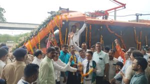 👉 शिंदखेडा साठी ऐतिहासिक असा सोनेरी क्षण होता…आजपासून उधना ब्रह्मपुरी अमृत भारत एक्सप्रेस सुरू झाली असुन शिंदखेडा ला थांबा मिळाल्याने रेल्वे प्रवासी संघर्ष समिती चे तालुका अध्यक्ष दादा मराठे यांच्या नेतृत्वात भाजपच्या पदाधिकारी, कार्यकर्त्यांसह अधिकाऱ्यांनी हिरवा झेंडा दाखवत स्वागत केले.सदर गाडी उधना येथून शुभारंभ सकाळी अकरा वाजता देशाचे पंतप्रधान नरेंद्र मोदी यांनी ऑनलाइन तर उधना येथे केंद्रीय मंत्री सी आर पाटील यांच्या हस्ते हिरवा झेंडा दाखवून करण्यात आला त्यानंतर सदर गाडी मार्गस्थ होवुन बारडोली, व्यारा, नवापूर, नंदुरबार दोंडाईचा व शिंदखेडा या ठिकाणी येऊन थांबली सदर गाडीला शिंदखेडा तालुका रेल्वे संघर्ष समिती तालुका अध्यक्ष दादा मराठे यांच्या नेतृत्वात भाजप पदाधिकारी व रेल्वेचे अधिकारी अमित साहू व राजेंद्र पोहाणे,राहुल मराठे यांनी हिरवा झेंडा दाखवत उधना ब्रह्मपुरी अमृत भारत एक्सप्रेसचे स्वागत केले. हया चिमुकल्या मुलां मुलींनी तिरंगा झेंडा हातात घेऊन हवेत फिरवला.सदर जलद रेल्वे गाडी सुरू झाल्याने शिंदखेडा शहर व परिसरातील प्रवाशांमध्ये उत्साह दिसून आला यावेळी उधनाहून सदर गाडी प्रवास करीत असलेले गोरख माळी सह अनेक प्रवाशांनी रेल्वे बाबत विचारले असता रेल्वे ही आधीच्या रेल्वे पेक्षा अत्याधुनिक टेक्नॉलॉजीने सर्व सुख सुविधा युक्त असल्याचे सांगितले. आज शुभारंभ प्रसंगी उधधा ते ब्रह्मपुरी पर्यंत रेल्वे प्रवास मोफत करण्यात आला होता तसेच प्रवाशांना उत्कृष्ट प्रतीचे भोजन देखील प्रवासात देण्यात येत आहे.दिव्यांग साठी सुसज्य व्यवस्था यामुळे प्रवाशामध्ये उत्साहाचे वातावरण होते सदर रेल्वे नियमित सुरू करावी अशीही प्रवाशांनी रेल्वे अधिकाऱ्यांकडे मागणी केली. एकंदरीतच हयापुर्वी सदर गाडीला शिंदखेडा रेल्वे स्थानकावर थांबा मिळावा यासाठी रेल्वे प्रवासी संघटनेचे तालुका अध्यक्ष दादा मराठे यांनी रेल्वेमंत्री माननीय अश्विनी वैष्णव व महाराष्ट्र राज्याचे पणन व राजशिष्टाचार मंत्री तथा पालकमंत्री माननीय जयकुमार रावल यांच्या पाठपुराव्यामुळे सदरचा थांबा मिळाला असल्याने तसेच गटनेते रावसाहेब अनिल वानखेडे सह रेल्वे प्रवासी संघर्ष समितीचे दादा मराठे सह भाजपा पदाधिकारी तसेच शिंदखेडा शहर व परिसरातील नागरिक प्रवाशांनी विशेष आभार व्यक्त केले. यावेळी रेल्वे प्रवासी संघटनेचे तालुका अध्यक्ष दादा मराठे, माजी उपनगराध्यक्ष प्रकाश देसले, उल्हास देशमुख, भिला पाटील,माजी नगरसेवक चेतन परमार, एडव्होकेट विनोद पाटील, दिपक चौधरी,रिपब्लिकन पार्टी ऑफ इंडिया आठवले गटाचे धुळे जिल्हा उपाध्यक्ष संजय पाटोळे, माजी पंचायत समिती सदस्य सुभाष माळी, प्रकाश चौध